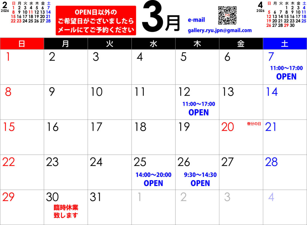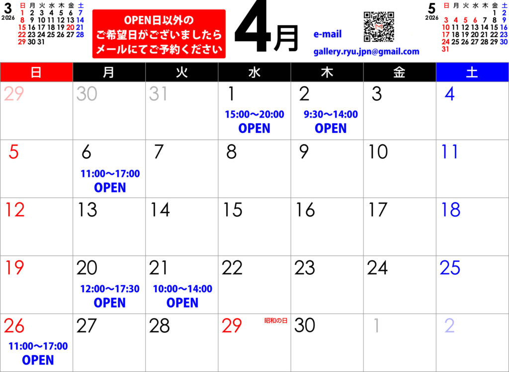 ギャラリー龍 今月のスケジュールカレンダー